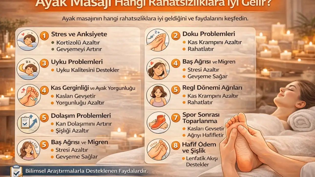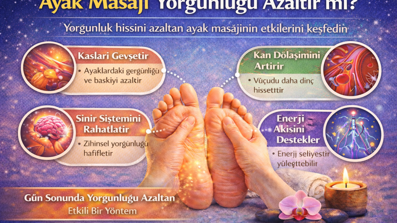 Ayak masajı, hem fiziksel hem de psikolojik rahatlama sağlayan destekleyici bir uygulamadır. Gün boyunca tüm vücut ağırlığını taşıyan ayaklar; kas, bağ dokusu ve sinir sistemi açısından yoğun bir yük altındadır. Bu nedenle düzenli ayak masajı, yalnızca konfor değil; bazı rahatsızlıkların semptomlarının hafifletilmesine de katkı sağlayabilir.
