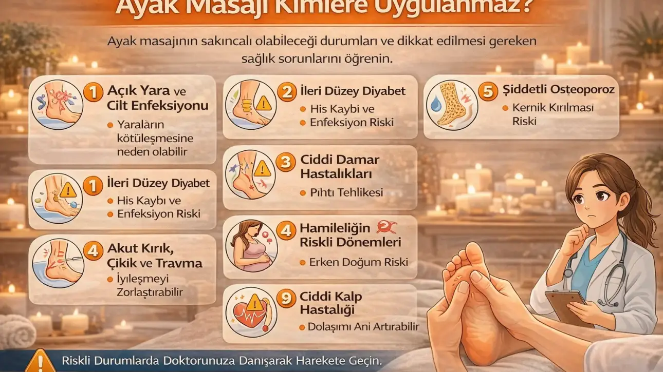 Ayak masajı; kas gevşetici, dolaşımı destekleyici ve rahatlatıcı etkileri nedeniyle yaygın olarak tercih edilen bir uygulamadır. Ancak her ne kadar güvenli ve destekleyici bir yöntem olsa da bazı sağlık durumlarında ayak masajı önerilmez veya dikkatli uygulanmalıdır. Bu nedenle “ayak masajı kimlere uygulanmaz?” sorusu, özellikle kronik rahatsızlığı olan kişiler için önemlidir.