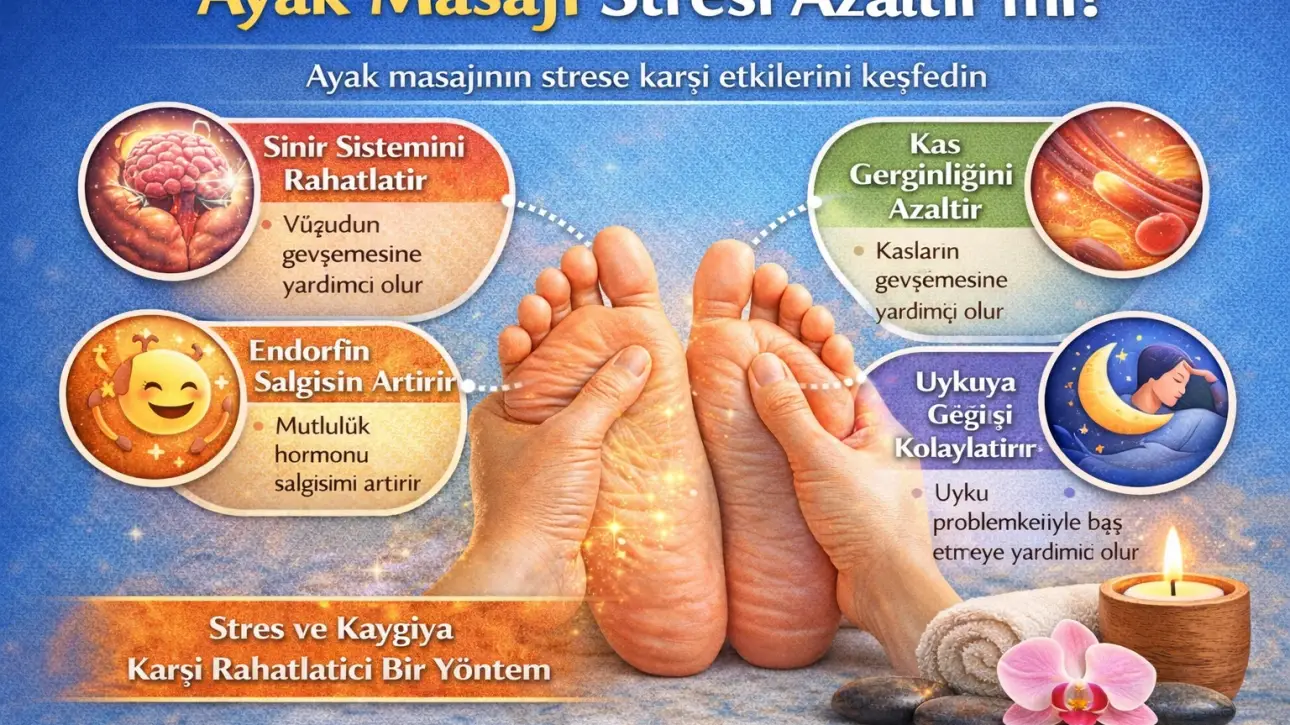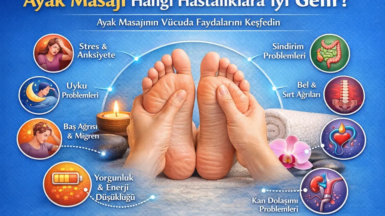 Ayak masajı, hem rahatlama hem de sağlık açısından faydalı olan en popüler masaj türlerinden biridir. Gün içinde uzun süre ayakta kalmak, yoğun iş temposu, stres ve fiziksel yorgunluk ayaklarda ciddi bir baskı oluşturur. Bu nedenle düzenli olarak yapılan ayak masajı, vücudun rahatlamasına ve enerji seviyesinin artmasına yardımcı olabilir.