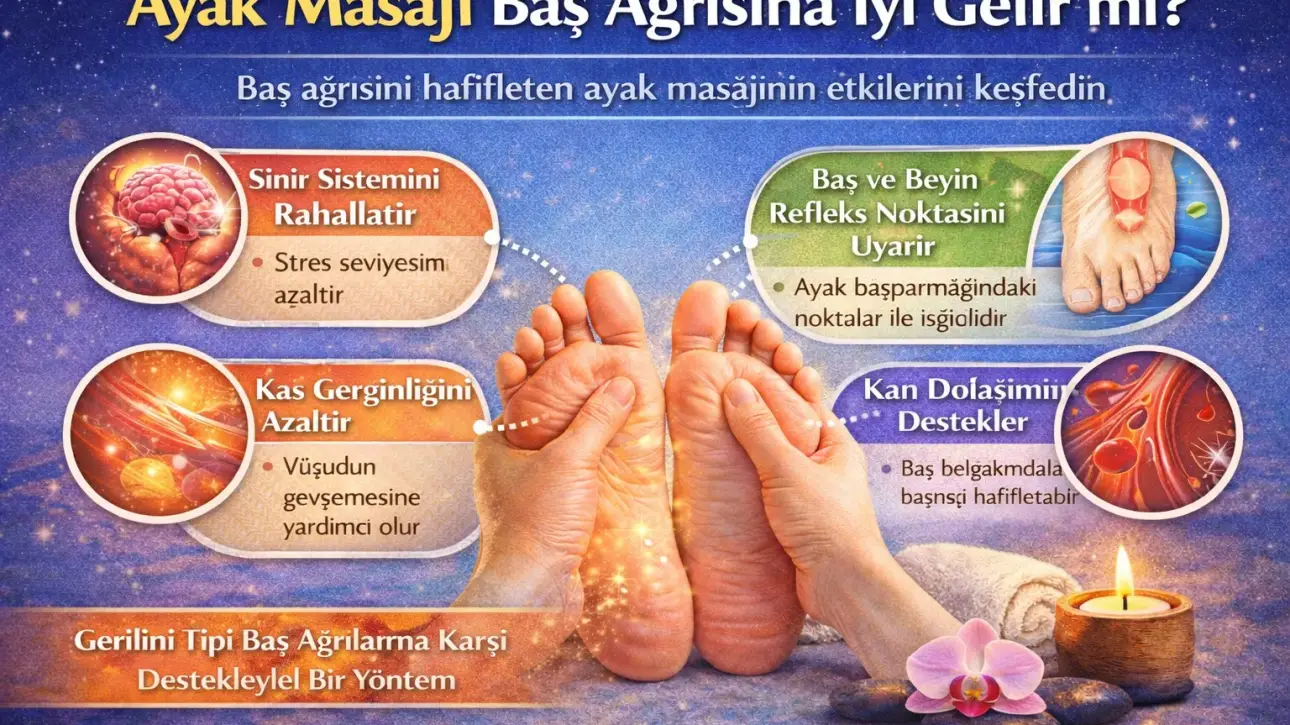 Baş ağrısı, günümüzde en sık karşılaşılan sağlık sorunlarından biridir. Yoğun iş temposu, stres, uykusuzluk, ekran kullanımının artması ve düzensiz yaşam alışkanlıkları baş ağrısını tetikleyen başlıca faktörler arasında yer alır. Bu nedenle birçok kişi, ilaç dışı ve doğal yöntemlerle baş ağrısını hafifletmenin yollarını aramaktadır. Bu noktada ayak masajı, destekleyici bir rahatlama yöntemi olarak öne çıkar.
