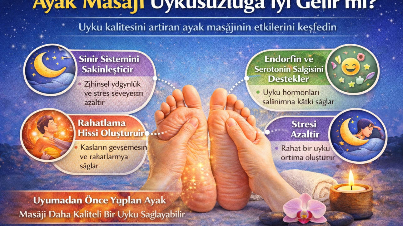 Günümüzde yoğun iş temposu, stres, ekran maruziyeti ve düzensiz yaşam alışkanlıkları nedeniyle uykusuzluk (insomnia) oldukça yaygın hale gelmiştir. Kaliteli uyku alamamak; gün içinde yorgunluk, konsantrasyon eksikliği ve performans düşüşü gibi birçok soruna yol açabilir. Bu nedenle birçok kişi ilaç dışı, doğal çözümler aramaktadır. Bu yöntemlerden biri de ayak masajıdır.